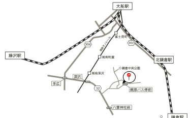 ・深沢バス停(湘南深沢駅より徒歩4分) より 京急バス(船2 梶原行/船3 富士見台行/船8 鎌倉駅行)6分 梶原バス停より徒歩1分